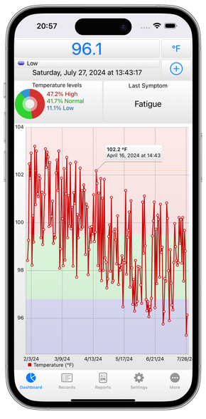 - Symptom Tracker: Log associated symptoms with each temperature reading